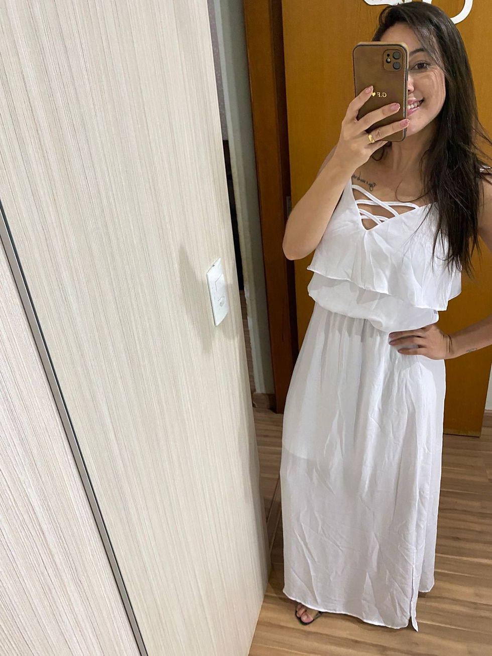 Vestido Midi Azul Marinho de Poá - Tamanho M